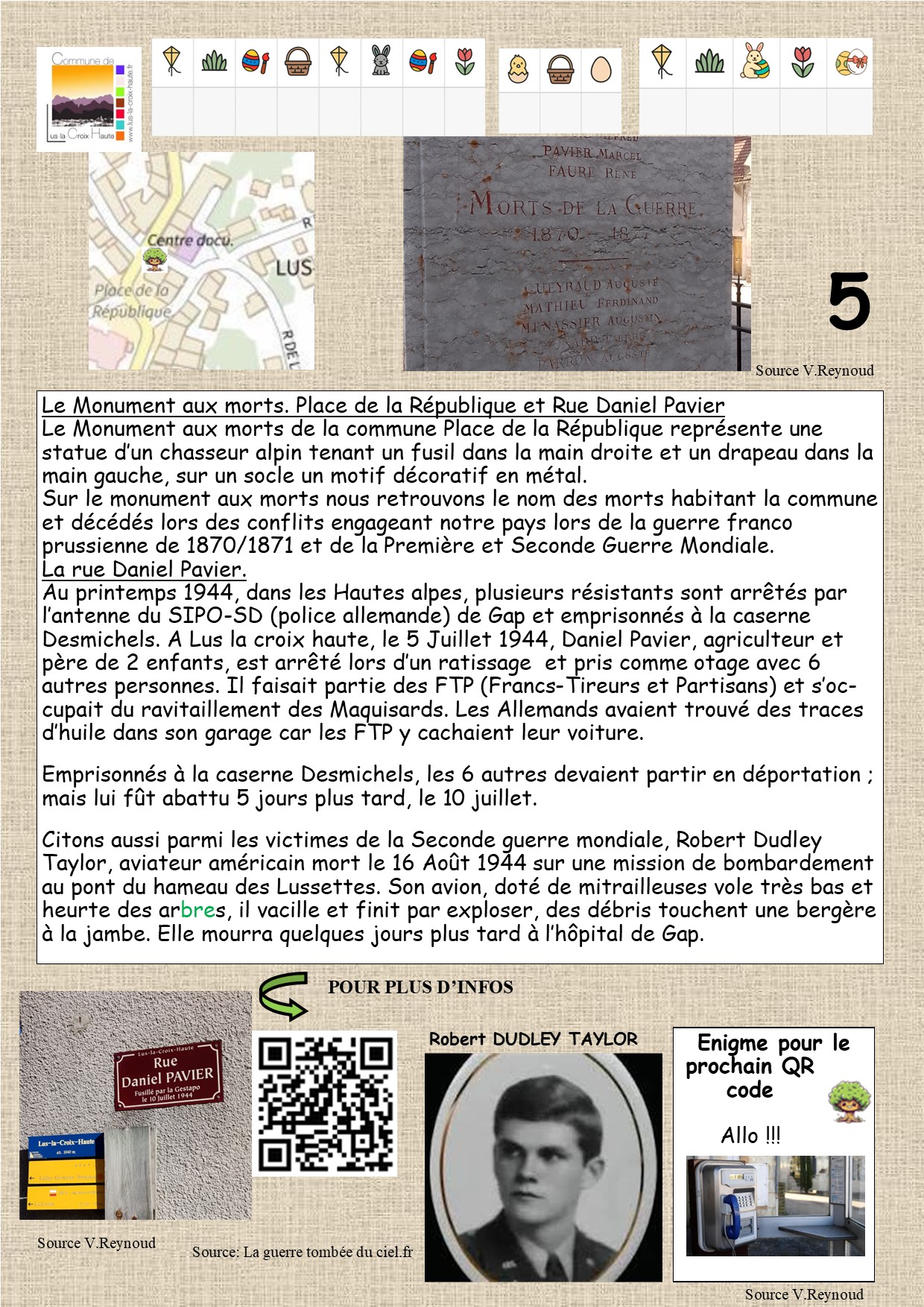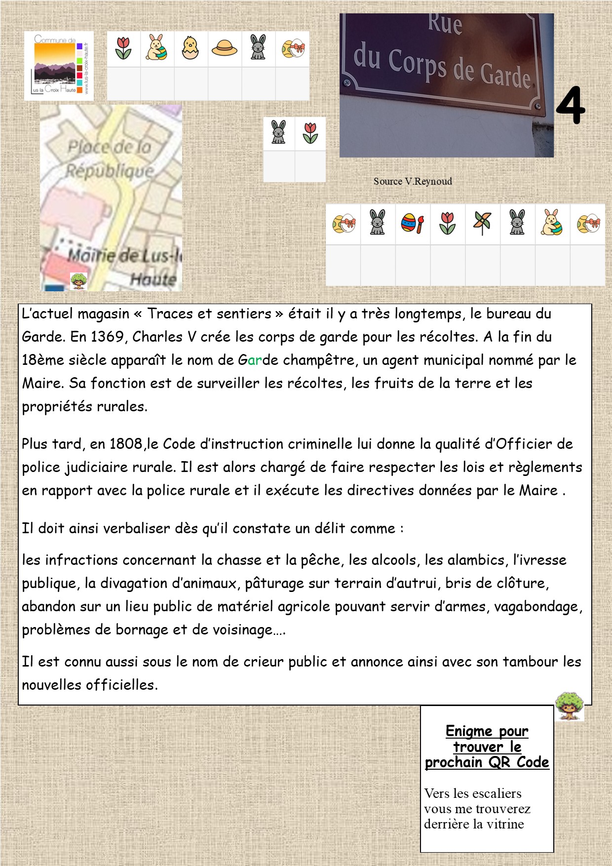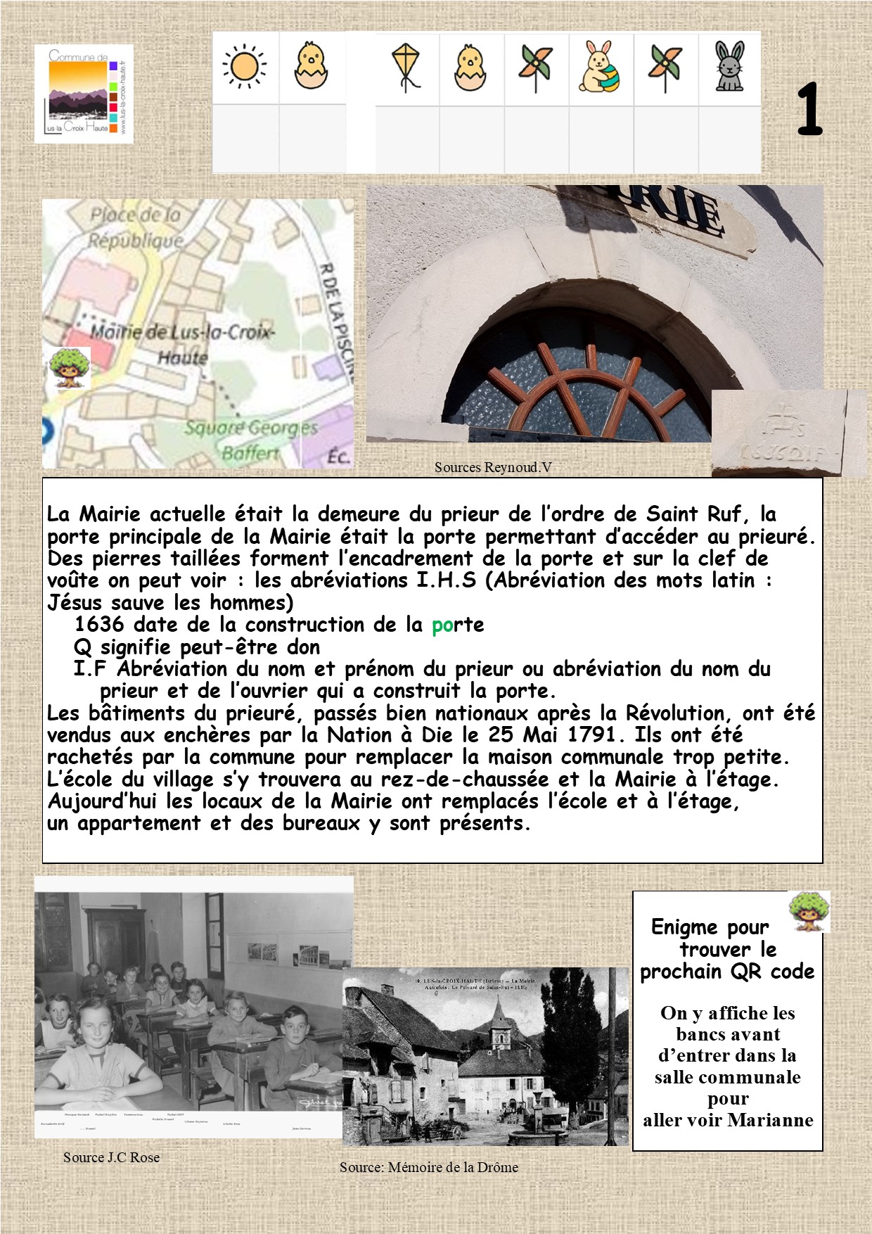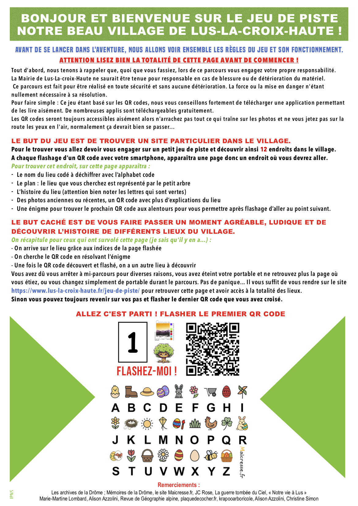 Ce jeu est basé sur la découverte de QR code qui sont donc renvoyés sur cette page du site internet de la commune de Lus la croix haute
